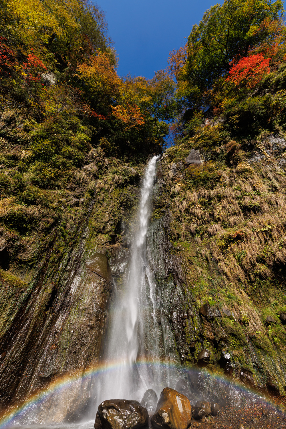 投稿日: 2025年10月30日滝沢の不動滝 赤城山の色が中腹まで下がってきています。 もうじき紅葉が麓までおりてきますね。 今日も秋晴れとなった赤城南麓、ということで滝沢の不動滝の様子を見てきました。 滝沢渓谷は色づき始めたところですが、不動滝の最上部は良い感じに色付いていました。 見頃は来週ぐらいになるでしょうか? でも、今日は滝壺の大きな虹を見ることができたのでナイスタイミングでした。 撮影日 2025年10月30日 滝沢の不動滝